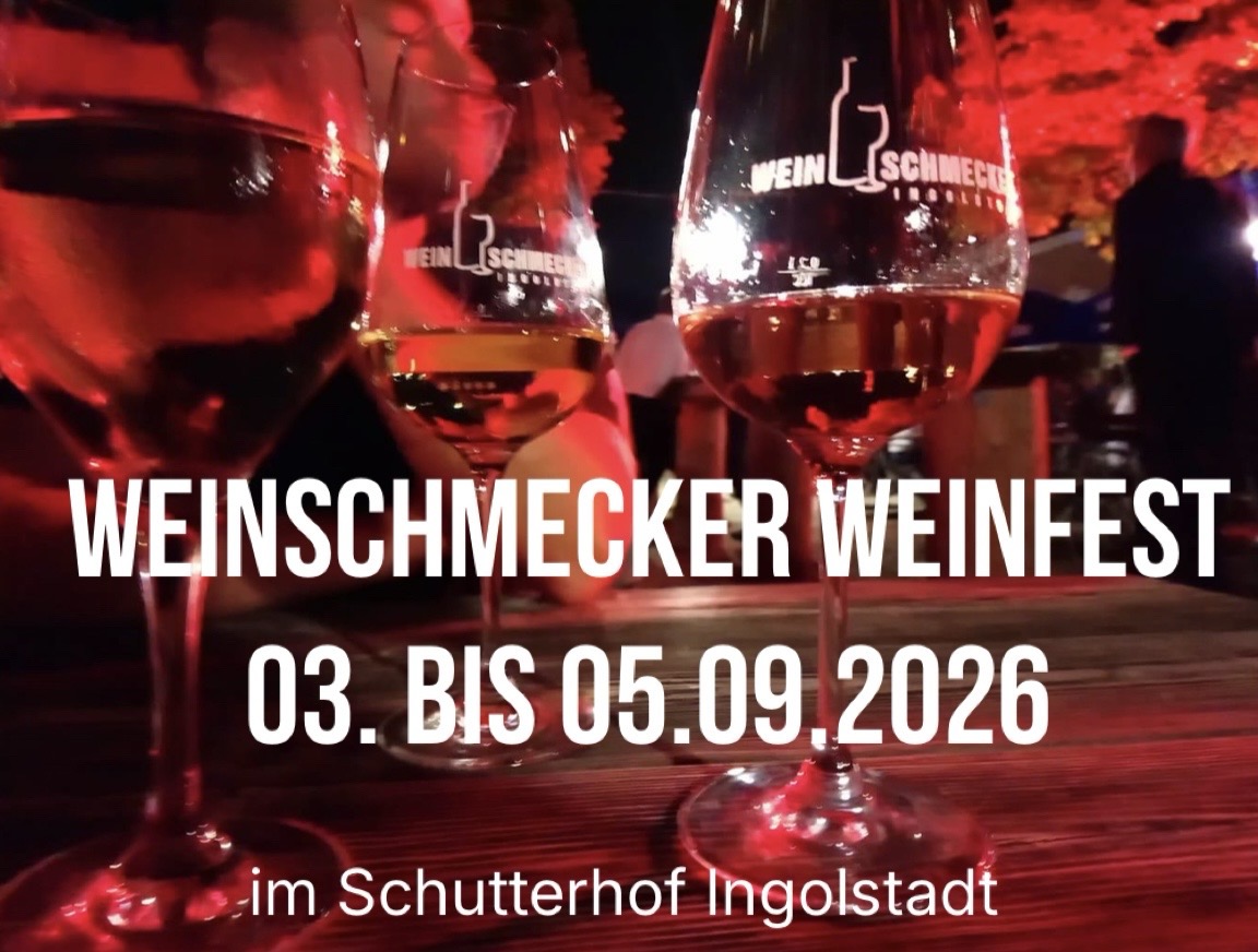 Vom Donnerstag, 03.09. bis Samstag, 05.09.2026 wird der Biergarten Schutterhof in Ingolstadt wieder zum WEINGARTEN verwandelt. Beginn ist am Donnerstag und Freitag jeweils ab 17.00 Uhr, am Samstag bereits um 16.00 Uhr.